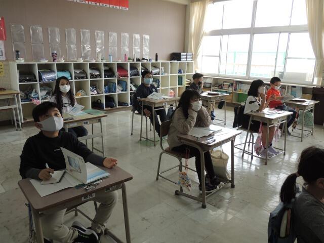 総合的な学習の時間に、地域の方を講師に招いて東日本大震災についての講話をいただきました。メモをとりながら真剣にお話を聞いたり、しっかり感想を発表したりする児童の姿が見られ、一人一人が震災について考える貴重な機会を得ることができました。講師を務めていただきました岡崎様、小松様、誠にありがとうございました。