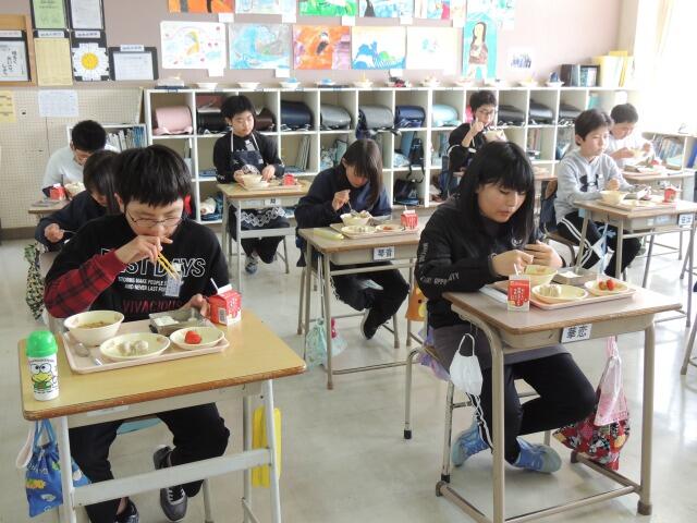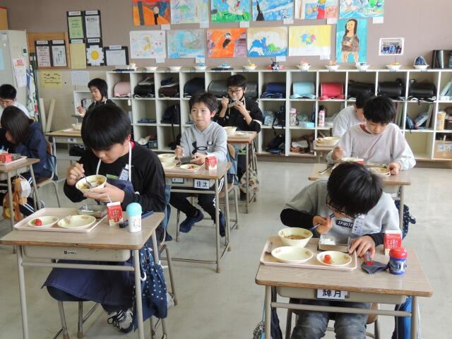 さすが6年生、あっという間に準備を終え、どの学年よりも早く「いただきます。」校長先生が話しかけても、シーン・・・・。素晴らしい黙食でした。担任の先生は満面の笑みを浮かべておいしそうに食べていました。