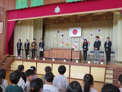 転入した女の子も全校児童と全職員の拍手で迎えられ、とても安心したような表情を浮かべていました。すっと立ち上がり、手をつないで自分たちの学級の仲間が待つ場所へエスコートする子たちの姿がとても頼もしく見えました。