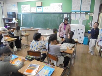 各教室からは子供たちのにぎやかな声が聞こえてきます。4年生は今日から使うノートに名前を書いたり、給食当番や係活動の役割分担をしたりと、学級の組織作りに大忙し。みんなで協力し、どうやら子供たちも担任もおいしく給食のカレーを楽しむことができたようです。