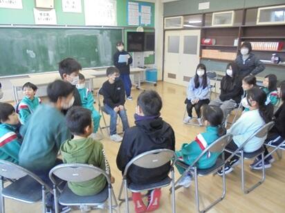 業間時間に今年度最後となる「なかよし班活動」を行いました。あいにくの天気でしたが子供たちは縦割り班ごとに各教室に集まり、それぞれの班で楽しく活動しました。いつもは6年生の子供たちが前に立ち、各班の活動をリードしますが、今年度最後の活動となった今日は5年生がその役目を務めました。