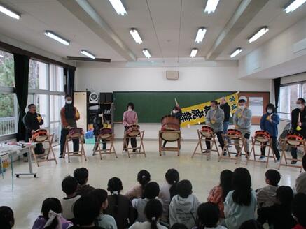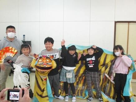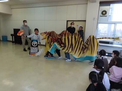 太鼓の演奏と虎舞の動きを体験し、子供たちは伝統芸能の魅力を身体いっぱいに感じたようです。