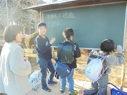 校門脇に設置されていた黒板の移設工事が完了し、子供たちが毎日メッセージを書き込んでいます。これまでは委員会ごとに当番を決め、6年生と職員が黒板の運用をしてきましたが、1月に入ってからそのサイクルに5年生が加わりました。担任からの働き掛けもあり、先輩たちの背中を見てきた5年生も一生懸命に活動に取り組んでいます。