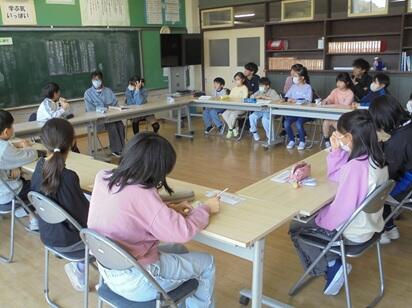 昼休みに代表委員会を開催し、運動会のスローガンについて話合いを行いました。代表委員になっている児童は各学級で話し合ってきたことをはきはきと述べ、どの子も真剣に話合いに参加していました。