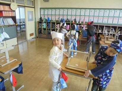 みんなで力を合わせて重い机を丁寧に運ぶ子供たちの姿が見られました。相手を思いやる温かい声掛けも大変すばらしかったです。