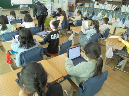 【2年生】AIドリル(キュビナ)を用いて掛け算九九の練習や、時計の読み方の練習に取り組んでいました。休み時間には職員室に向かい、校内の職員に掛け算九九の暗唱を聞いてもらっています。目指せ免許皆伝!