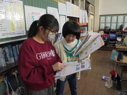 【5年生】教科書を片手に英語の発音の仕方を確認し、スピーチ発表やALTとの英会話の充実を目指します。友達と一緒に活動することで、どの子も自然と笑顔になって学びを深めていました。