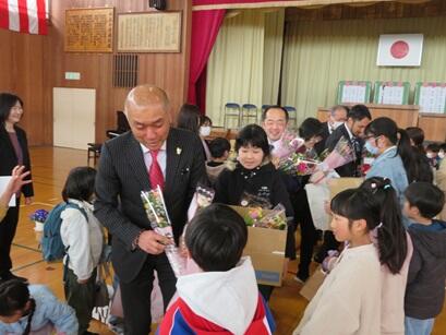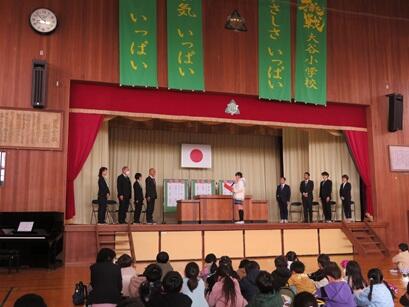 大谷小学校での勤務年数はそれぞれ異なりますが、どの職員も自分が一生懸命に子供たちと向き合ってきた毎日を思い出し、最後のスピーチを行いました。離任する職員は朝の職員室ではにこにこしていましたが、やはり子供たちの顔を見ると熱いものが込み上げてきたようです。長い教員人生の節目を迎える校長の涙のスピーチは、私たち職員と全校児童の心の奥に強く響くものでした。