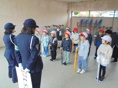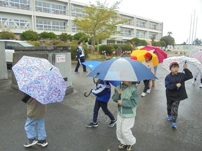 大谷駐在所の所長さんと交通安全指導員の皆様のご指導・ご協力の下で、交通安全教室を行いました。あいにくの雨模様でしたが、低学年の児童は指導員の皆様のお話を真剣に聞き、道路の横断の練習を含めた歩行訓練に一生懸命取り組みました。