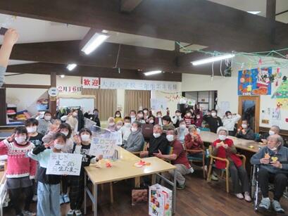 3年生の児童が大谷デイサービスセンターに校外学習に出掛け、施設を利用されている方との交流会を行いました。デイサービスセンターでは利用者の皆さんが子供たちの到着を楽しみに待っていてくださいました。子供たちはグループに分かれ、歌や早口言葉、昔の遊びなどを交えながら利用者の方々と交流し、笑顔いっぱい、優しさいっぱいの時間を過ごすことができました。