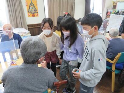 交流させていただいた利用者の皆さんの中には「けん玉名人」や「あやとり名人」もいらっしゃったようで、準備や練習をしていたはずの子供たちがすっかり教わる側になる場面もありました。初対面の方との交流に緊張気味の様子だった子もいましたが、交流会が終わる頃にはすっかり心がぽかぽかになり、時間を惜しんで一緒に活動を楽しむ姿が見られました。