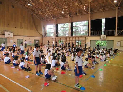 また表彰後は、コンクール入賞者だけでなく、日常の中で輝く行動を見せた児童も紹介しました。自主的に校庭のラインを引いた運動委員の児童、休み時間に落ち葉を集めて校庭をきれいにしてくれた2年生、学年をこえて元気に運動を楽しむ子どもたち…。