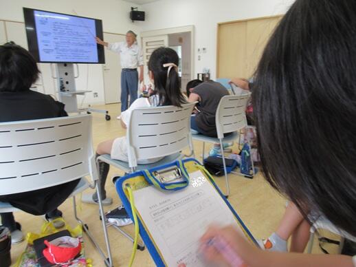続いての防災講話では、なぜ11月に総合防災訓練を行うのか、津波防災の日の由来である「稲むらの火」のお話、そして「津波避難の三原則」や、近年注意すべきクマとの遭遇への備えなどを学びました。 講話の最後には、「まさか来ないだろう」ではなく「もしかしたら起こるかもしれない」と考え、日ごろから備えることの大切さを確認しました。子どもたちは真剣な表情で耳を傾けていました。今回の講話で災害から命を守る意識を一層高めることができたと思います。