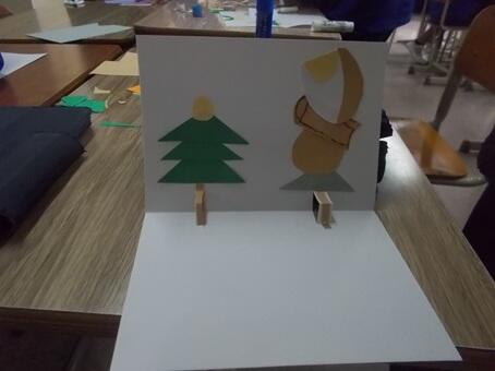 1年生は2時間目に、気仙沼支援学校の生徒との交流会があり、クリスマスカードを作りました。