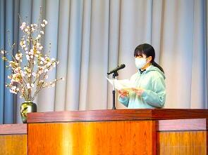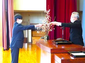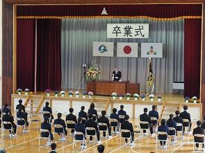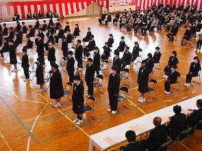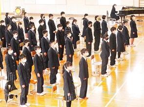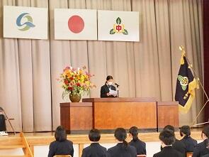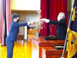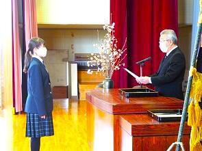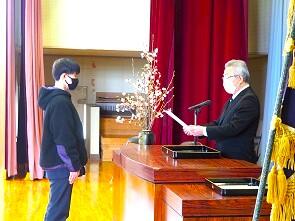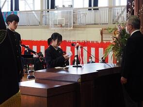 3月9日(土)第77回卒業式を挙行しました。卒業生は,保護者の皆様や来賓の皆様に見守られながら,一人一人,卒業証書を受け取りました。送辞では2年生の山内くんが,答辞では卒業生の中島さんが,それぞれを代表して「感謝」や「決意」などを述べました。