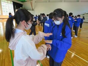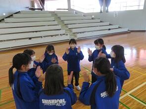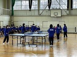 放課後に体育館に行ってみました。男女のバスケットボール部と男女卓球部が活動をしていました。どちらの部員も生き生きと活動していました。