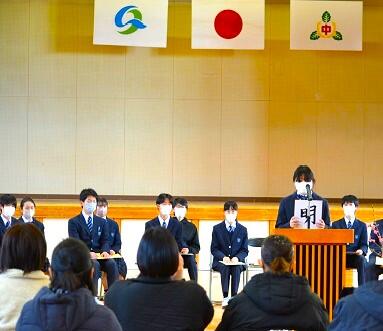 3月19日(火)立志式を行いました。2年生の生徒が,将来に向けて決意を表明するものです。保護者の皆様にも大勢ご来校いただき,生徒も保護者の皆様の前での表明ということで,改めてその決意を固くしたと思います。ご協力ありがとうございました。生徒の皆さん,来年度は最高学年です。最高の1年にできるよう,頑張ってください!