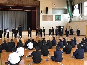 今日の6校時は,3年生を送る会でした。1・2年生の生徒が準備し,3年生への感謝の気持ちが詰まった会でした。コロナ禍であり,例年とは違うプログラムになりましたが,距離をとりながら体育館に全校生徒が集まってできたことは,3年生にとっても思い出に残る時間だったと思います。