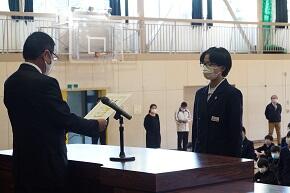 今朝の生徒集会は,厳しい寒さが続くことや感染症予防の観点から,放送を使って行いました。読書感想画コンクールとアンサンブルコンテストの賞状伝達の後,生徒会の各委員長から全校生徒への呼びかけがありました。今週末の終業式も,感染症予防のためZOOMを使って行うこととしています。