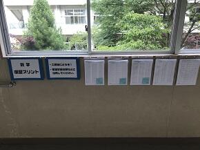 2・3階の廊下に,写真のようなプリントが準備されています。学習の基礎を定着させるためには,ドリルも必要だと思います。ぜひ,家庭学習で活用してみてはどうでしょうか。