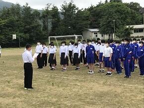 今日の放課後,今週末に行われる新人大会壮行会が行われました。各部から,大会に向けての力強い意気込みが発表された後,3年生の前部長から温かな励ましの言葉がありました。鹿中魂で鹿中旋風を巻き起こしてもらいたいと思います。