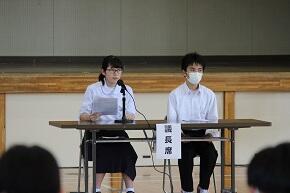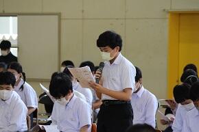 その後,各学年の代表生徒が1学期を振り返った作文発表がありました。3人の生徒は堂々と発表していました。明日から夏休みです。事故のない,そしてコロナに負けない生活を送ってもらいたいと思います。
