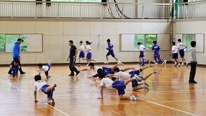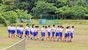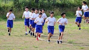 活動の最後には,みんなで大きな円を作って校歌を熱唱します。かけ声等は記録の良かった部長が行います。…今回は生徒ではなく教師がこんな企画を立てて,体力作りのための「長縄大会」を提案し,これが始まったのです。毎週金曜日の予定です。