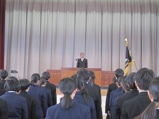 今日から実質的な冬休みに入りました。年末年始を経て,1月8日(火)から3学期が始まります。17日間の冬休みです。1年を終え,1年をスタートさせるこの節目を大切にして,更なる自分の成長へと活用してほしいと思います。管内の申し合せで,長期休業中は,特別な事情がない限り部活動も行わないことになっていますから,生徒は家庭で過ごす時間が多くとれます。この期間は親子の対話や触れ合いのチャンスです。ご家庭でのご指導をよろしくお願いたします。