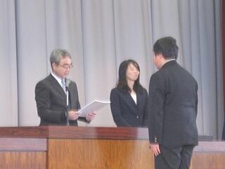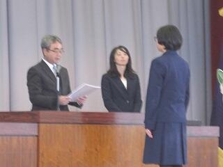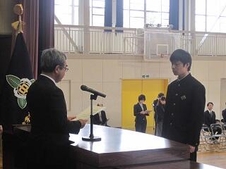 既に河北新報でご紹介いただいていましたが,本校3年生の生駒大地くんが,県人権作文コンクールで優秀賞をいただきました。おめでとうございます。12月13日(木)には,仙台法務局気仙沼支局の佐藤支局長さんを始め,お二人の人権擁護委員が来校され,直接,生駒くんに賞状や盾を手渡していただきました。大変ありがとうございました。