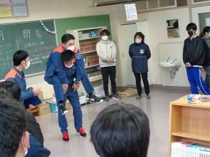 後半は各学年ごとに、搬送訓練、ロープワーク訓練、応急手当訓練を行いました。