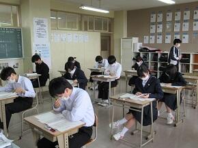 2年生の教室では,宮城県教育委員会の事業である「英検IBA」が行われていました。今の自分の実力が英検だと何級に相当するかをはかるものです。みんな一生懸命に取り組んでいました。1年生の美術では「絵文字のデザイン」が行われていました。一目で漢字の意味が分かるように,工夫しながら制作していました。完成が楽しみです。