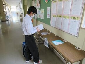 明日14日(木),条南中学校を会場に,本吉地方中学校弁論大会が行われます。本校を代表して出場する生徒が,校内で弁論を堂々と発表しました。多くの生徒の前で発表するのは初めてで緊張した様子でしたが,しっかりと自分の考えを述べていました。明日も頑張ってくれるものと思います。
