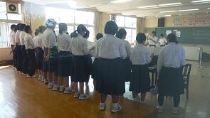 一方男子は柔道の授業を終えて,今度は体育館でバスケットボールの授業をしています。冷えきった体育館の中で,この日はゲームをしていました。おそらくチームごとの作戦があったりするのでしょう。時間に無駄のない授業でした。次々とプレーが展開しています。見ている生徒から歓声が上がり,応援する声,アドバイスする声が聞こえてきます。授業時間の終了近くになると,生徒は自然と片付けの位置に移動しながら試合の様子を見ています。そして終了時間になると,さっそく後片付けが始まります。全員が全体の動きを意識しながら,次々と先を読んだ行動をしているのです。指示を受けずとも時間が有効に生かされている,素早い行動でした。しっかりと走り,一生懸命に身体と頭を使った保健体育の授業でした。さすが3年生と思って授業を見ました。
