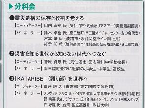 また,一方,鹿折中学校は防災学習にも力を入れています。どの学年も年間25時間の防災学習をします。3年間で75時間です。この他に毎月11日は「防災学習の日」として課外学習が行われます。ねらいは「生き抜く力」を学び高めることです。キーワードは,「そなえる」「まもる」「つながる」です。