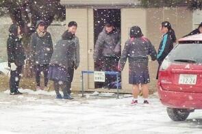 これは以前に行っていた「朝の縄跳び」の発展形の取組です。ある先生が生徒にアンケート調査したところ,運動をもっとしたいが,なかなかできていないと感じている生徒が大勢いることが分かりました。では,もし運動するとして,どの時間帯が適切かを尋ねてみると,昼休みと答える生徒が多かったのです。そこで,生徒たちに昼休みに外で運動したり,遊んだりしようと先生が提案し,生徒の一部が外に出てくるようになったのです。気候がよくなったことも一因かもしれません。何か適当な運動はないものかと先生が探したところ,新品の竹馬が倉庫にあることを見つけたらしく,5月からは昇降口に置くようにしています。