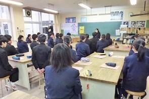 後半は教室でのお話です。夢先生のこれまでの歩みや経験・考えをお聞きして,自分の夢を考え,育む時間です。この時の生徒の眼差しは真剣そのものであり,しっかりお話を聞いて考えていることがよく分かるものでした。