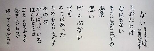 震災の発生した3月は「忘れるな八年前の大震災」,年度が変わった4・5月は「いつでも防災意識を持とう」,避難訓練を校内で行う6月は「避難訓練で防災意識を高めよう」というものでした。校舎内の階段踊り場などにこの標語か貼り出されて防災を呼びかけています。防災委員の皆さん,毎月の標語の掲示,大変ありがとう。お陰でいつも防災を意識できています。