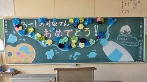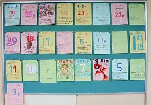 昨日ご紹介した学級には,また別の目を惹くものがありました。上の写真です。どやら学級目標が決定したのですね。「極限的結戦 ~自分たちの極限の力を出し友達と団結してカベに向かって戦え~」というものらしいのです。「なんと斬新な学級目標!」と思いましたが,これが生徒にとっては,イマドキの表現なのかもと思ったのです。そして,これを教室に清書して掲示するためにどのように書くかも検討され,提案されているのです。工夫のある表現が企画されているように思います。これが完成して掲示されるのが楽しみです。表現力や企画力のある学級ですね。