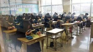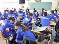 この学級では,一つの班が一つの係を担当する方式です。驚いたのは,班の役割の中に,班長,清掃長,特殊任務長,学習長,清掃長といった個別の役割分担があることでした。これは昔はなかったなと思いながら見ていると,各班の「◎◎長」同士が集まって話合いをしているのです。(右下の写真)例えば清掃長は「各班の掃除の取組」について,班長は「クラス全体をみたとき,よいこと,わるいこと」について,それぞれ現状→課題→解決策を話合っているのでした。1年生ながら,うーん,なかなかやるなと思って見ました。このような活動をとおして中学生は少しずつ成長していきます。ご家庭でも,お子様にどんな活動・仕事をしているのか尋ねてみてください。きっとお子様のやる気につながると思います。