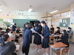今日は,3年生を送る会でした。例年であれば,体育館で行いますが,コロナ禍であることから,オンラインで行いました。生徒会総務を中心に,1・2年生で準備した,温かな会でした。3年生にとって,思い出の一つになってくれたらと思います。
