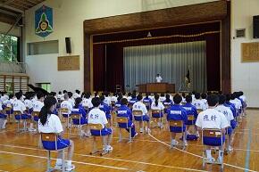 短かった夏休みも終わり,今日から2学期が始まりました。午前8時40分から体育館で始業式を行いました。校長の式辞の後,各学年の代表生徒が2学期の抱負を発表しました。どの抱負も具体的で,気持ちのこもったものでした。