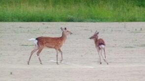 上の写真は6月7日(金)の撮影です。夕方の校庭に2頭の鹿が現れ,二人で追いかけたりしながらしばらく遊んでいました。多いときは3頭で現れることがあるのですが,その鹿のうちの2頭なのでしょうか?親子なのでしょうか?