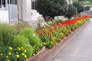 運動会のときに気づかれた方もいらっしゃると思いますが,職員室前の花壇にはサルビアとマリーゴールドがきれいに咲いています。これは,主に用務員の三浦さんが植栽したり,管理したりしているものです。6月だったでしょうか,7月の初め頃だったでしょうか,花壇を整理し,新たにマリーゴールドとサルビアを植栽してくれました。養護教諭の豊田先生や生徒のYさんも手伝ってくれていました。それが今,赤と黄の花を咲き誇らせているのです。夏らしい元気な花ですね。学校に活気を与えてくれます。