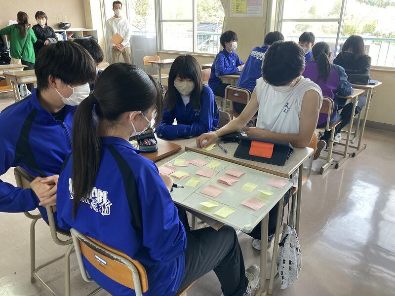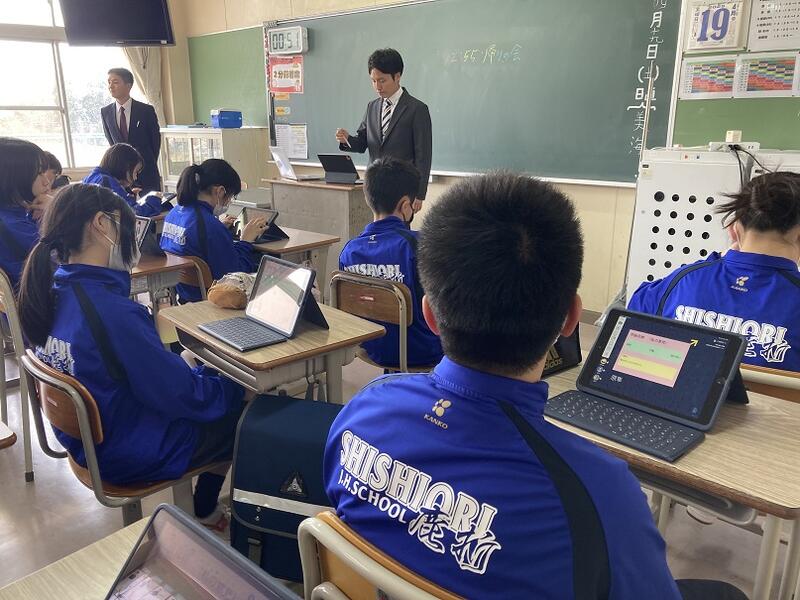 2年1組は数学の授業です。       3年2組は学級目標を決めています。