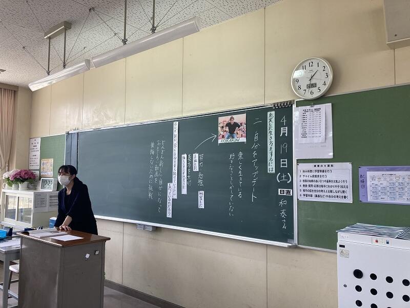 1年1組は学級目標を話し合いました。        2年2組は社会の授業です。