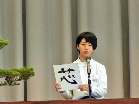安部巧真さんは,「笑いの絶えない幸せな生活を送るために,これからの学校生活を頑張っていきたい。」と力強く話しました。