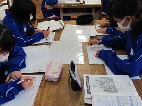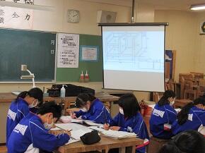 1年生の技術の授業では,木工作品の設計図を一生懸命に描いていました。デザインは自分で考えています。どのような作品に仕上がるか,楽しみです。