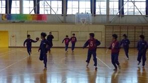 一方男子は柔道の授業を終えて,今度は体育館でバスケットボールの授業をしています。冷えきった体育館の中で,この日はゲームをしていました。おそらくチームごとの作戦があったりするのでしょう。時間に無駄のない授業でした。次々とプレーが展開しています。見ている生徒から歓声が上がり,応援する声,アドバイスする声が聞こえてきます。授業時間の終了近くになると,生徒は自然と片付けの位置に移動しながら試合の様子を見ています。そして終了時間になると,さっそく後片付けが始まります。全員が全体の動きを意識しながら,次々と先を読んだ行動をしているのです。指示を受けずとも時間が有効に生かされている,素早い行動でした。しっかりと走り,一生懸命に身体と頭を使った保健体育の授業でした。さすが3年生と思って授業を見ました。