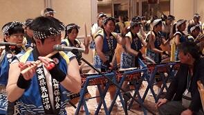 実はこの日の演奏・演舞の中に本校生徒たちが参加しているのです。そして,その保護者の皆さんも…。生徒は自信をもって一生懸命に演奏し,踊っていました。郷土の文化に誇りをもって,折々に学校外でこんな文化活動をしているのです。もちろん,この活動の中で子どもたちは地域をよく知り,家庭や学校では得られない物事を学びます。そして,充実した人格を形成し,将来の伝統継承者となっているのです。