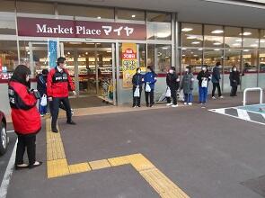 本日,学区内のスーパーマーケット様のご協力を得て,「鹿折中アルカス(明るいまちをつくるボランティアクラブ)」の活動をしてきました。突然の声掛けに足を止めて話を聞いてくださった地域の皆様,ありがとうございました。また,活動場所を快く提供してくださいましたスーパーマーケット様に,心より御礼を申し上げます。ありがとうございました。